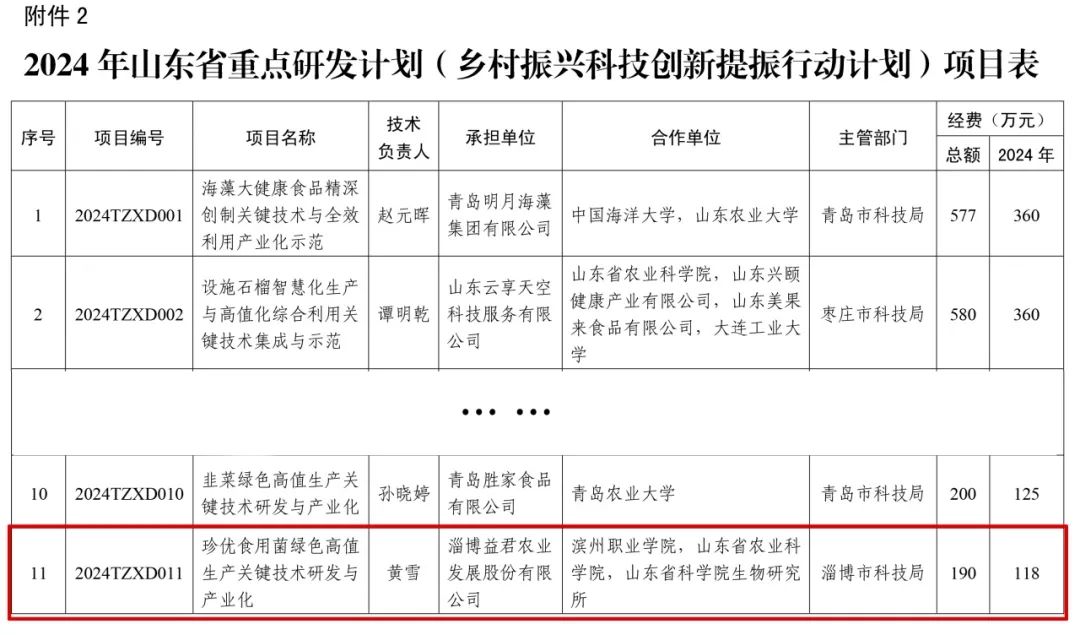 近日,山东省科技厅下发《关于下达2024年山东省重点研发计划(乡村振兴科技创新提振行动计划)项目的通知》,我校生物工程学院黄雪博士主持的“珍优食用菌绿色高值生产关键技术研发与产业化”项目获批立项,获批经费共计190万元,实现学校主持山东省重点研发计划项目的重大突破。