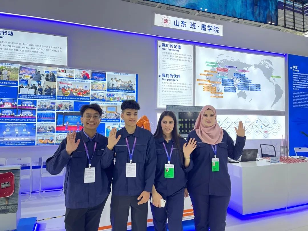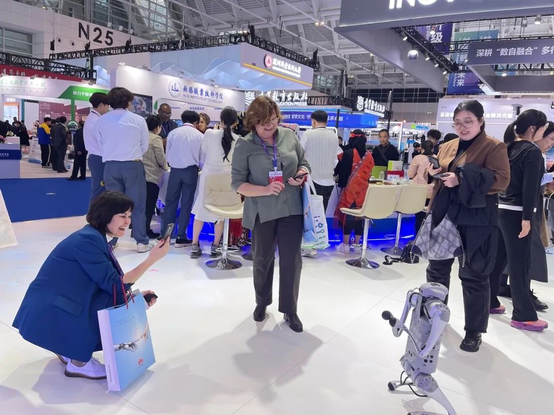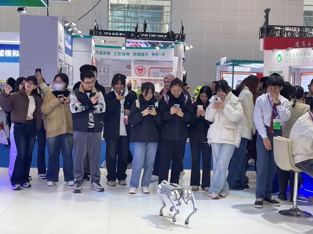 工业机器人“上岗”、机器狗“摸爬滚打”、国际留学生用中文宣介、“职通中文”教材展出......我校展位拉满“科技感”“国际范”,可谓展会中惊鸿一瞥,给参观者留下深刻的印象。