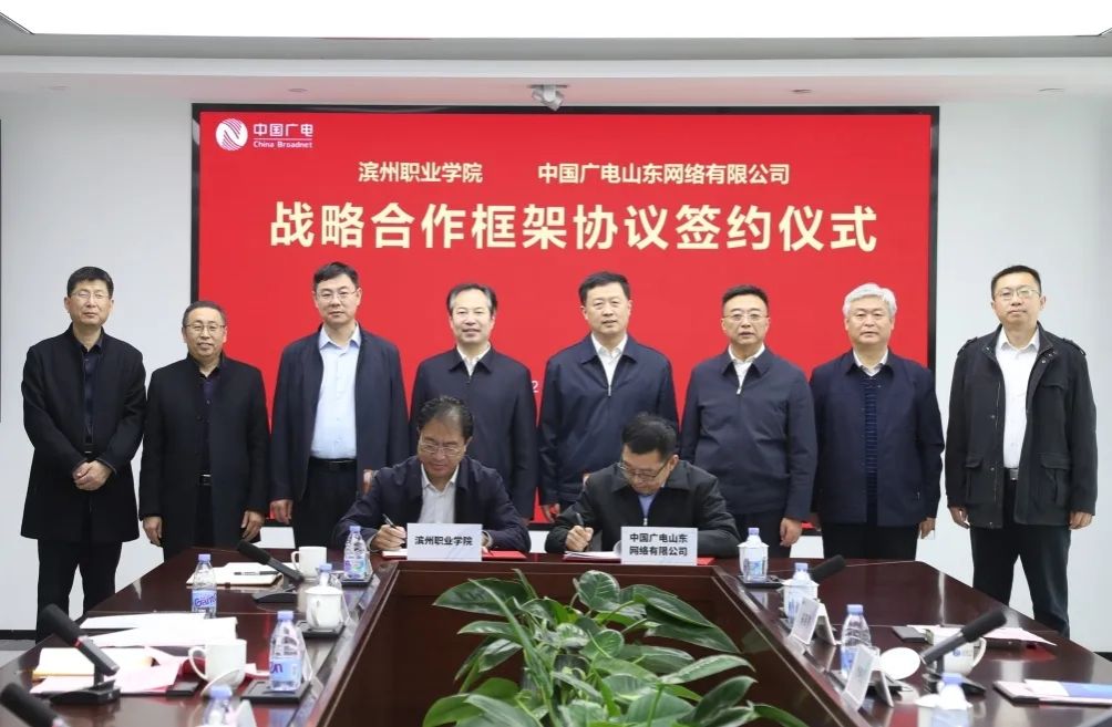 学习考察期间,滨州职业学院与中国广电山东网络有限公司签署战略合作框架协议。签约仪式上,刘荩一指出,多年来,借“人工智能+职业教育”之势,开展数字化课程建设和专业升级,数字化赋能学校高质量发展取得显著成效,希望以此次合作为契机,双方发挥各自优势开展务实合作,实现校企人才共享、优势互补,携手打造绿色发展新引擎,为地方经济社会发展作出更大贡献。谢宁表示,高校是广电网络重点服务对象,公司愿与学校在教学信息化、学科数字化、校园天眼等方面开展深入合作,打造智慧校园建设新标杆。